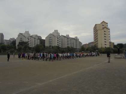 久しぶりということでしたが、並び方は、さすが6年生、そして5年生であると、何度も感心して、マイクを通して褒めました(^^)/