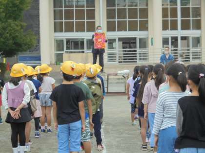 さて、今日は月曜日の全校朝会の日です。今まで、放送やオンラインを活用して、各教室で話やプレゼンを聴いたり見たりしていました。今週からは、雨が降っていない朝は、校庭で、全校児童が整列をする朝会としていきます。実は4月の始業式には1年生が入学していないので、朝礼台の前に並ぶのは今年度初めてのこととなりました。半年経って、やっと行うことができました。今月は「つながり強化月間」ということで、相手を思いやって過ごすことの大切さ、自分の学級、学年だけでなく、他の学年の児童とも積極的に関わって、学んでいくことを伝えました。また、SNSに関する誹謗中傷についても話をし、発する言葉も相手を深く傷つけることがあると、伝え、本校の子どもたちはみんな、思いやりのある言葉を発してほしいと伝えた朝会でした。