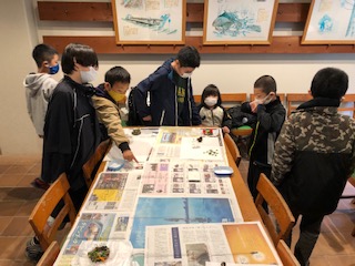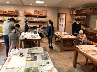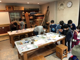 2つのグループに分かれて、作品づくりをしたので、それぞれのグループの作品を鑑賞し合っています。それぞれに感想を言い合っています(^.^)