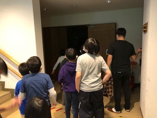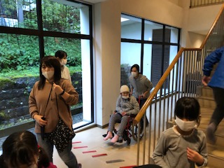部屋に荷物を置いてから、避難経路の確認と合わせ、施設内の見学をしました。