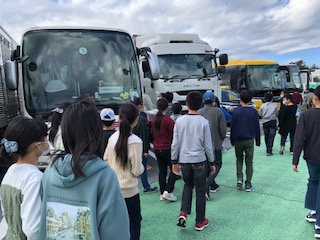 2時間半くらいかかって、高坂サービスエリアで休憩となりました。久しぶりに2号車の子どもたちと会ったら、バスの中で、飴を8個もなめたと言っている子もいました(^_^;)