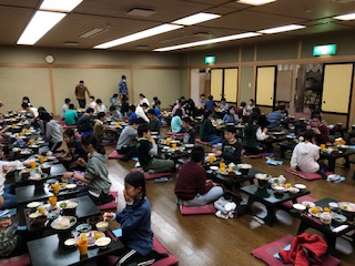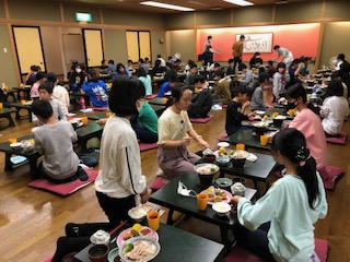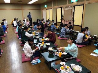 遅めですが、移動教室初めての夕ご飯です。とても豪華で、全部食べらるか心配な子もいるようです。感謝していただきましょう(^.^)