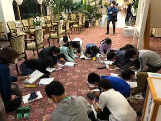 夕ご飯を済ませた後に、各係で打合せを行いました。各部屋に戻ったら、責任をもって班のメンバーに伝えます。聞いている態度や記録を取る姿、素晴らしいです。