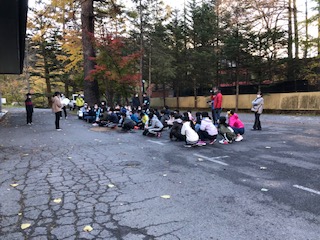 ホテルの前で、朝の会です。本当の寒さを感じています。ぐっすり眠れた子が多かったようです。今日は、予定変更がありますが、臨機応変に行動していきたいと思います。