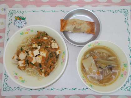 今日は麻婆豆腐を蒸し中華麺の上にかけます。いつもと違う食べ方ですが味わって食べてください。