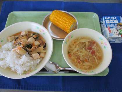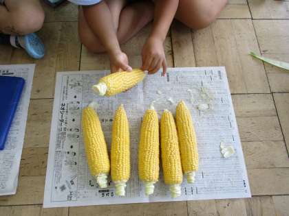 今が旬の「とうもろこし」は2年生が皮むきを手伝ってくれました。