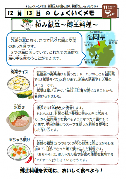 今月は九州地方にある福岡県の郷土料理をいただきます。
