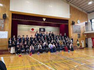 本校の第31回卒業式が実施されました。68名の卒業生です。卒業証書授与された時の卒業生は凛としていて,頼もしさを感じました。式後は先生や友達同士で記念撮影をしていました。どの子からも笑顔がたくさん見られました。卒業生の皆さん,保護者の皆様,本日は本当におめでとうございました。