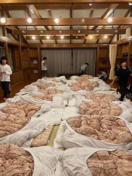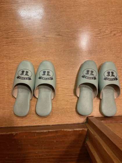 子どもたちは、大部屋での生活を楽しんでいます。慣れない布団敷きに悪戦苦闘しながら、みんなで協力して頑張りました。トイレのスリッパも次の人のことを考えて揃っています(写真は男子トイレ)。普段の学校生活でも取り組んでいる「靴を揃えて心を揃える」がこういう場面でも生きていることを嬉しく思います。