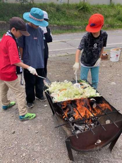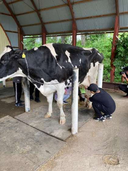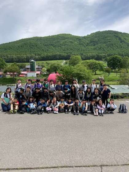 鷹山ファミリー牧場では、搾乳体験や酪農家の話を通して命の学習をしました。昼食は班ごとにBBQをして楽しみました。