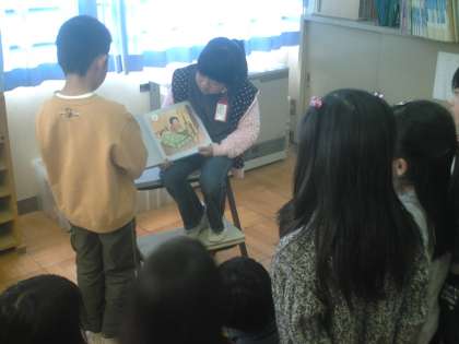 途中、「読み聞かせの時間ですよ」という担任の声にふと見ると、子どもたちが友達に上手に本の読み聞かせを始めました。日頃、保護者の方に朝の読み聞かせをたくさんしていただいているので、自分たちもやりたい気持ちになったのだそうです。本好きの子どもたちに育っていて、とてもうれしいことです。