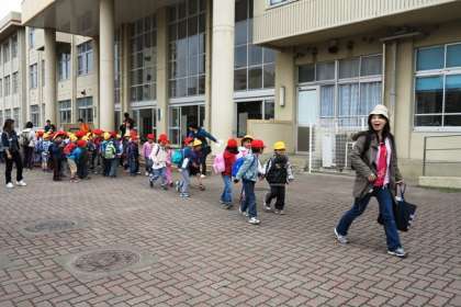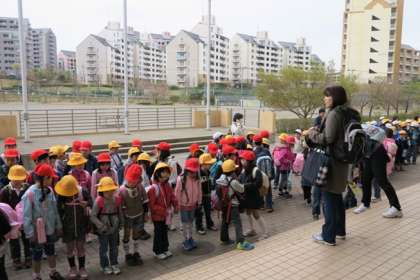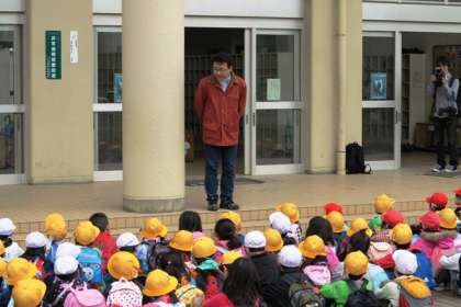真ん中の写真は出発式で荻間副校長先生の話を聞いているところです。天気が少し心配ですが、楽しい校外学習になることでしょう。1・2年生がしっかりと手をつないで出発です。気を付けて行ってらっしゃい。