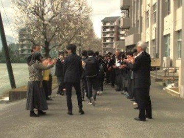 開式の時刻はあいにくの曇天でしたが、送り出しの際には眩しいぐらいの日差しも差し、卒業生たちの門出を祝福するかのようでした。