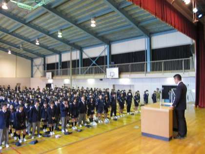 今日の朝礼が、今年度最後の全校朝礼ですが、まず先週行われた創立20周年記念式典と合唱コンクールについてお話しさせてください。