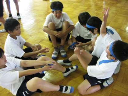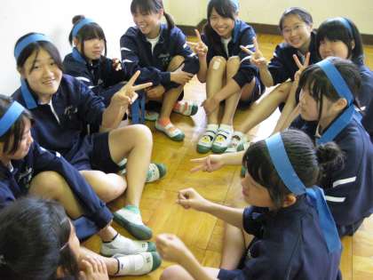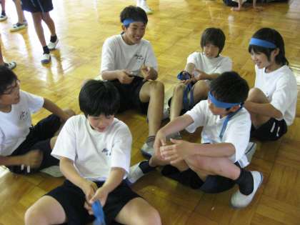 色別に応援の練習や作戦会議を行いました(青)