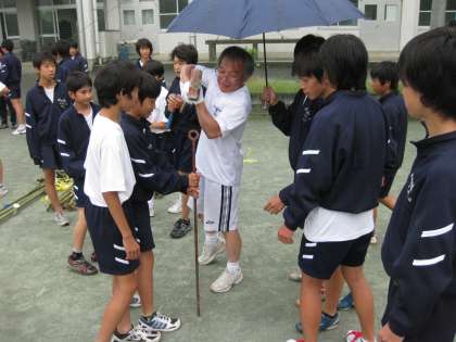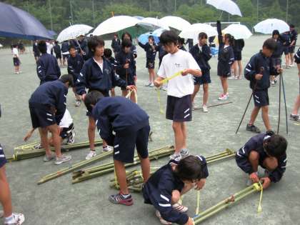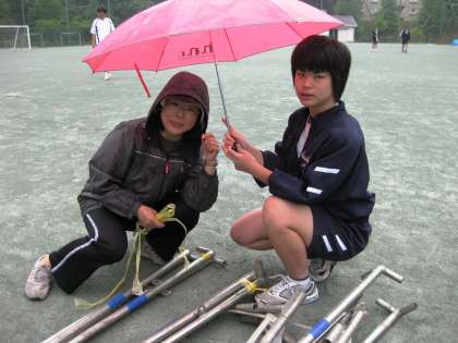 小雨の中、明日の体育大会実施に「向けての準備を行いました。