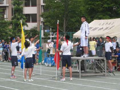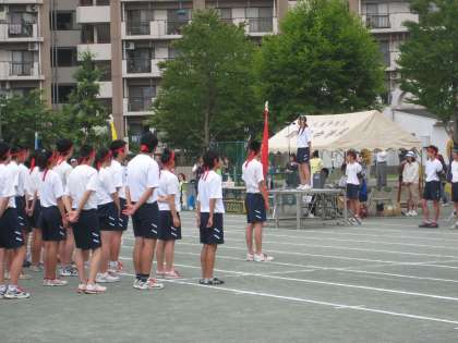 創立20周年記念体育大会が当初の6月6日(土)が順延になり本日6月9日(火)に実施しています。予定時間通り8時50分に入場行進を開始しました。開会式の様子です。