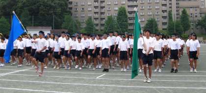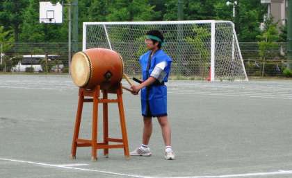 20周年記念体育大会ははっぴを着た生徒会役員を中心に太鼓の音とともにスタートしました。