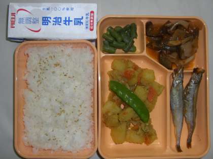 ● ごまご飯  ● カレー肉じゃが  ● 焼きししゃも