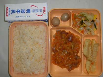 ● ボイルサラダ ● 煮玉子 ● 牛 乳