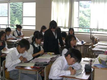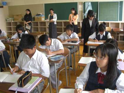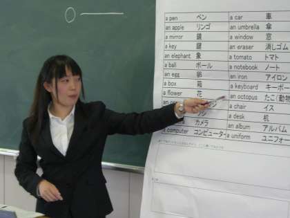 など、今日の授業でも使われていた例を黒板に書いて、生徒に読ませました。