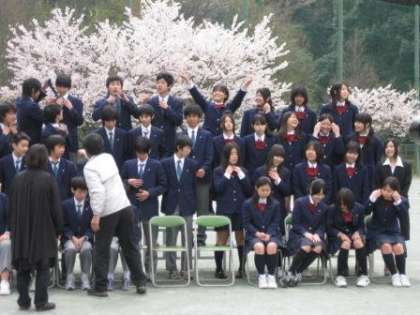 H22.4.9(金) 3年生クラス集合写真撮影風景2