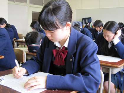 この 「 学力定着度テスト 」 も本校独自の取り組みのひとつで、毎年この時期に新3年生を対象として行っています。 国語・数学・英語・社会・理科の5教科について、主に復習問題を中心にテストを受けます。