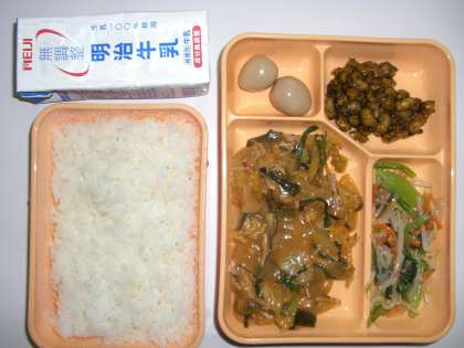 ● ポップビーンズ ● 煮玉子 ● 牛 乳