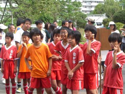 本校サッカー部との合同練習を行うためにやってきた松が谷FCの小学生たちも、飛び入り参加で協力してくれました。