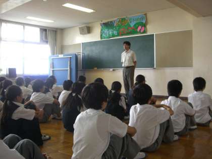 学年の先生方が、中学生時代の夏休みの経験談や、ご自分の夏休みの目標などにふれながら、目の前に迫った夏休みの充実した過ごし方についてお話しされました。