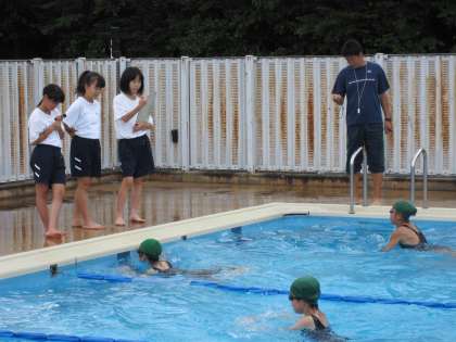 男女とも平泳ぎの指導を受けていました。