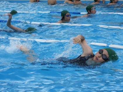 プールで水泳に取り組んでいます。