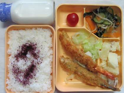 ● ゆかりご飯 ● エビ&ししゃもフライ ● ボイルキャベツ