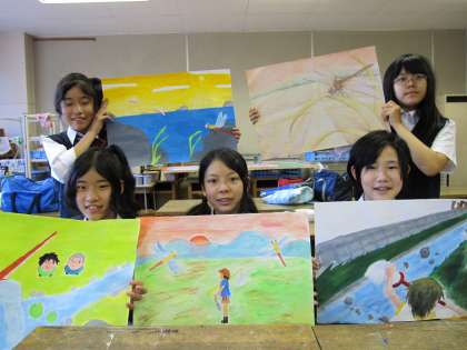 美術部の皆さんが 「 WE LOVE トンボ 」 絵画コンクールに応募する作品制作に取り組んでいます。 作品は、文字どおり 「 トンボ 」 や 「 トンボのいる風景 」 をテーマにしています。