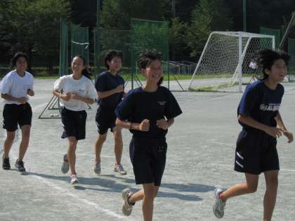 暑い日差しを避けて、陸上部は7時半から活動を行っています。
