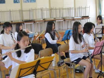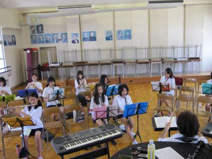 しかし、なんと言ってもアンサンブル部の特権として、冷房の効く音楽室で練習ができます。 恵まれた環境の中で何回も何回も練習して、あらゆる演奏の基礎になる音出しや指使いを身につけておきましょう。