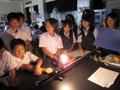 1学期の復習で、「 凸レンズでできる像を調べる 」 実験を行っています。