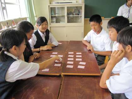 授業の後半は 「 百人一首 」 に取り組みました。( 写真・下 )