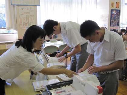 日本三大和歌集のうち 「 万葉集 」 については、主に平野先生の解説を中心に授業を行ってきました。 しかし、「 古今和歌集 」 と 「 新古今和歌集 」 は、場所を図書室に変えて班ごとの調べ学習を中心に行います。