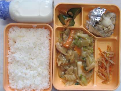 ● お月見シュウマイ  ● キュウリの桜エビ炒め  ● 牛 乳