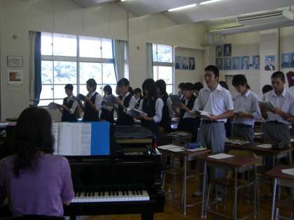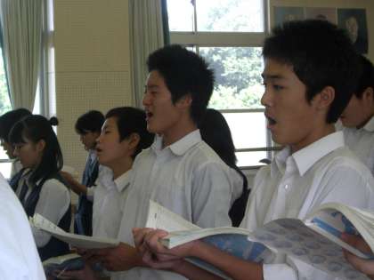 まだ練習半ばですが、さすが3年生と思わせるような歌声です。 … というよりも、まず合唱に臨む姿勢に感心させられます。