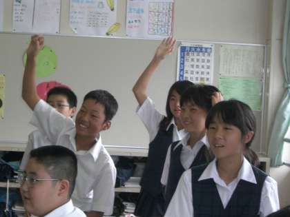 などの質問や、簡単な計算問題を英語で尋ねられ、わかったら手を挙げてやはり英語で答えなければなりません。
