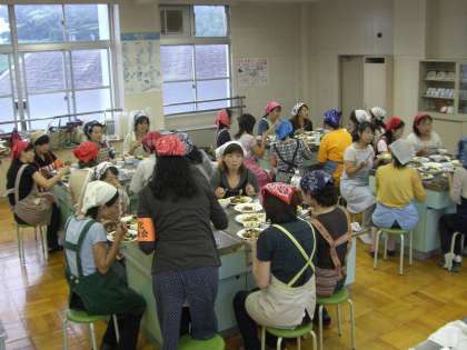 グループごとに 「 いただきます! 」 をしてから、ワイワイ・ガヤガヤ楽しいお食事タイムです。 私も、「 働かざる者食うべからず 」 「 No work,No pay 」 の戒めを封印して、ご相伴にあずかりました。