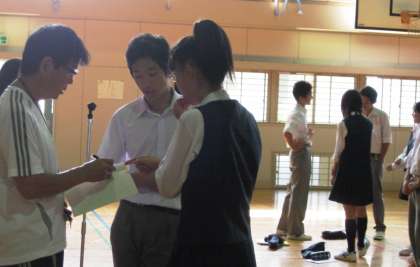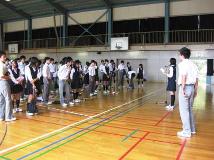 修学旅行実行委員が中心となって明日からの修学旅行の最終確認を体育館で行いました。