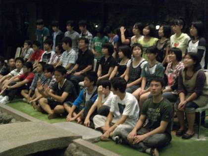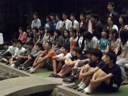 宿のロビーで集合写真を取るメリットは、他の観光客を気にせず、クラスごとにポーズを決めたり、何種類かの表情で撮影したりと、時間を気にせず撮影できる点です。