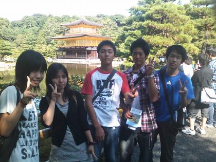 金閣寺には大勢の観光客が訪れています。 団体客も多いので、行列の途切れた一瞬がシャッターチャンスです。