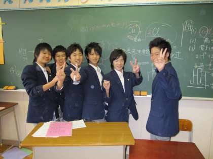 教室の中では、3年生の男子がなにやら黒板に落書き(?)をしています。 私の姿を見つけると、「 やべっ! 」 と言って慌てて何かを消したかと思うと、そのあとに 「 校長先生、絶好調! 」 と書いてくれました。 授業が始まるまでに、ちゃんときれいにしておいてくださいね。( 写真・中 )