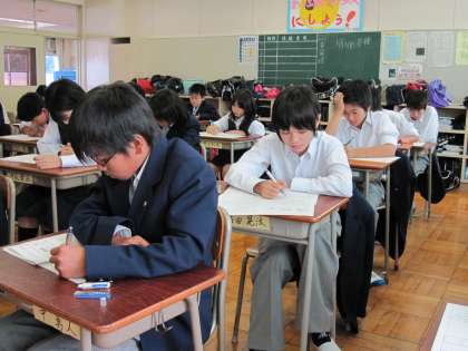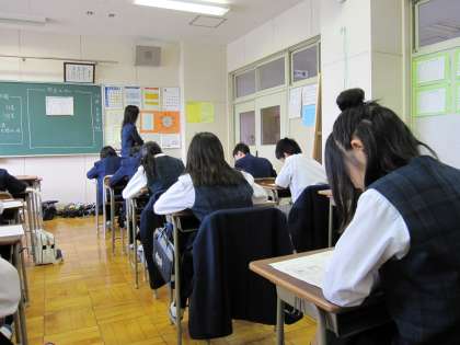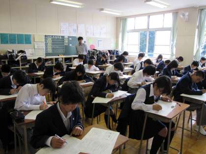 本日1時間目は、英語の試験です。 写真は、1年生の様子です。
