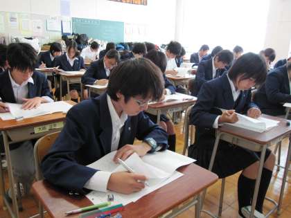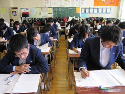 いよいよ進路希望を絞り込む時期にさしかかっていることもあり、みんな真剣な表情で問題に取り組んでいます。 どの教室も聞こえてくる音は、答案用紙にシャープペンシルを走らせる音だけでした。