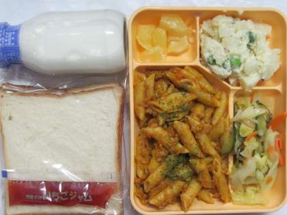※ 主菜・副菜がすべてカタカナ書きだったので、「 果物・牛乳 」 もそろえて統一感を出しました。